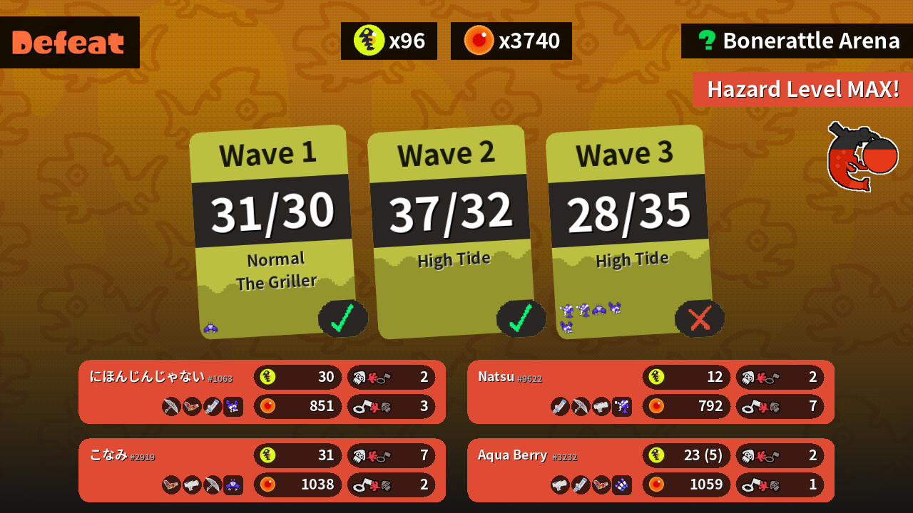 | Boss Salmonid | 18 | 18 | 16 | 13 |
