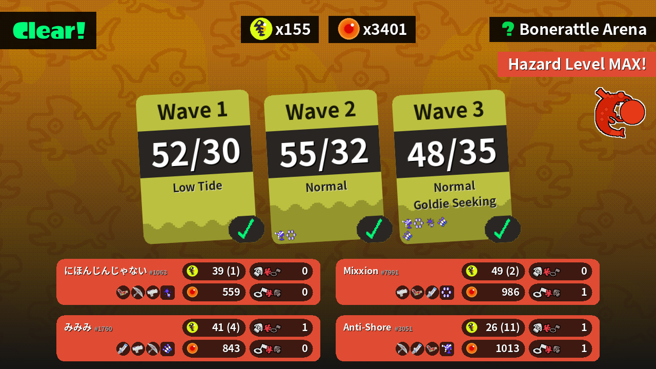 | Weapons | Hydra Splatling Splat Brella Splattershot Jr. | Splattershot Jr. Hydra Splatling Mint Decavitator | Mint Decavitator Splattershot Jr. Splat Brella | Splat Brella Mint Decavitator Hydra Splatling |