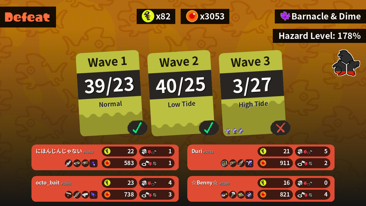 | Weapons | Mint Decavitator Splattershot Nova Sploosh-o-matic | Carbon Roller Splatana Wiper Splattershot Jr. | Grizzco Slosher Squeezer Grizzco Splatana | Mini Splatling Painbrush Dread Wringer |