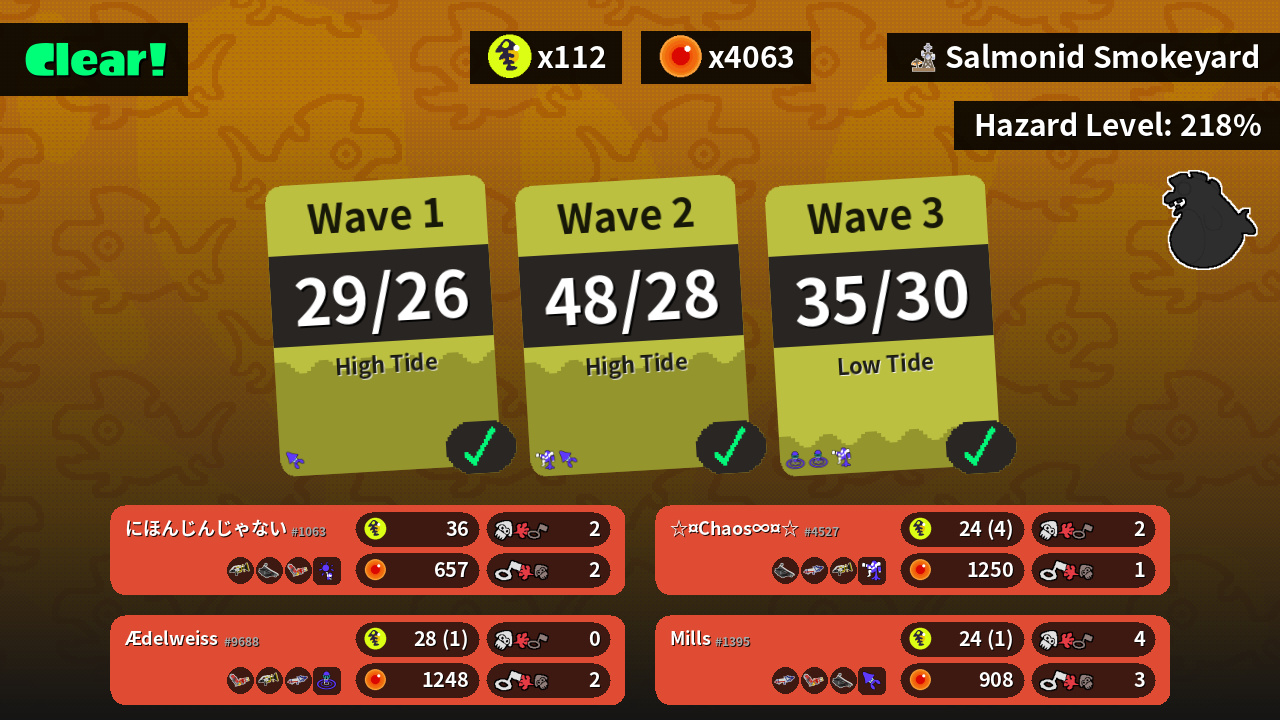 | Boss Salmonid | 16 | 18 | 17 | 15 |