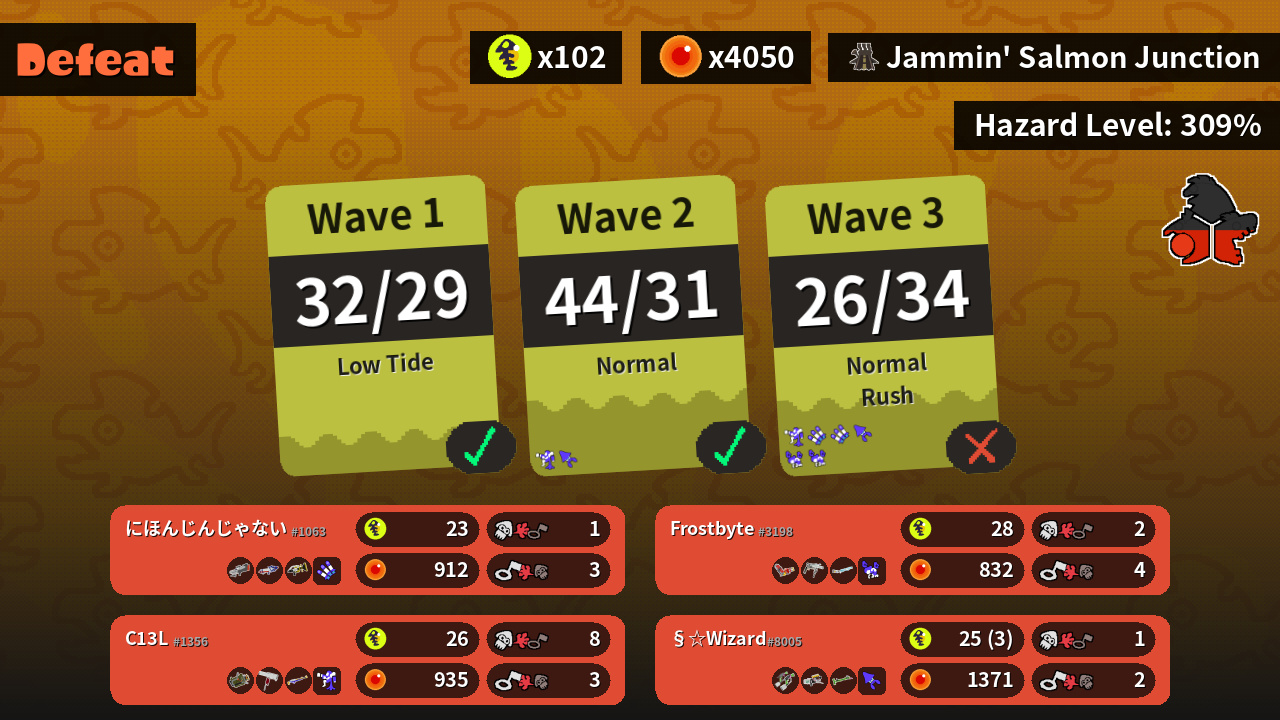 | Boss Salmonid | 14 | 13 | 18 | 22 |
