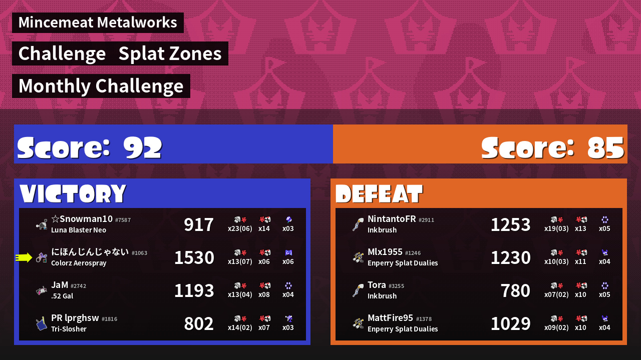 Kills / Deaths | 6 + 7 / 6 = Kill Ratio: 1.00 | ||