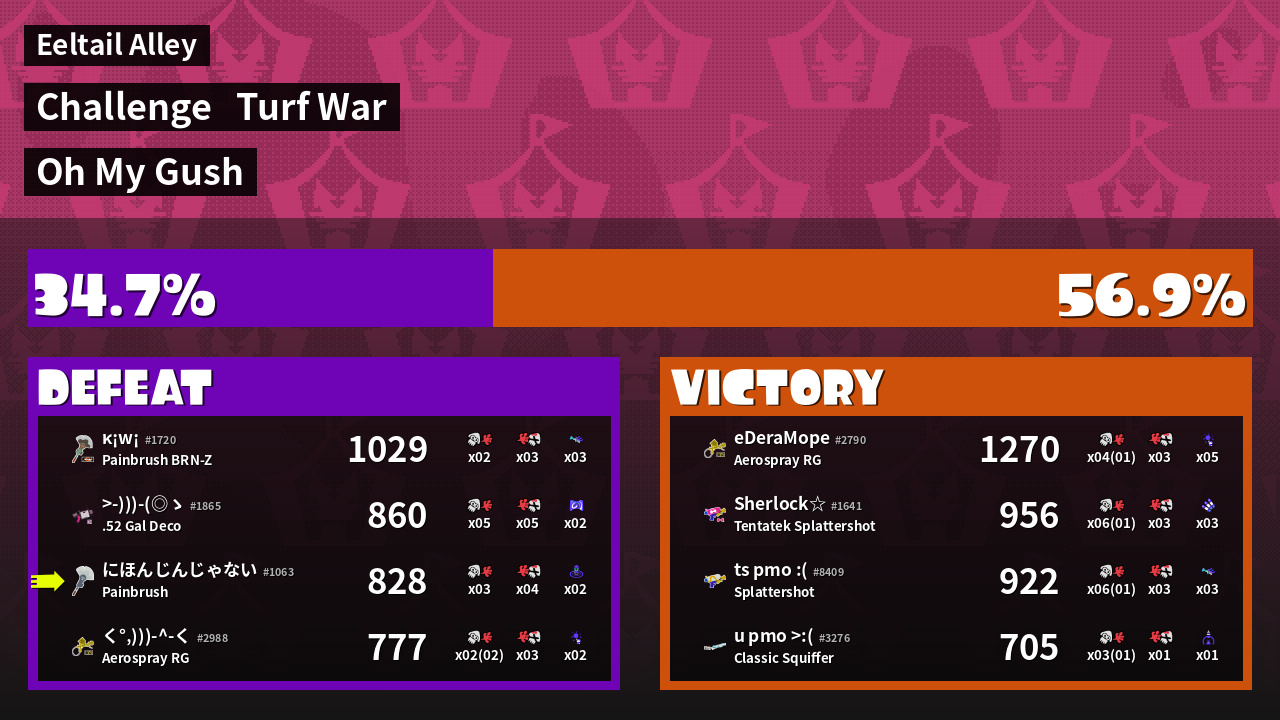 | Medals | #1 Damage Taker #1 Wave Breaker User #2 Overall Splatter | ||