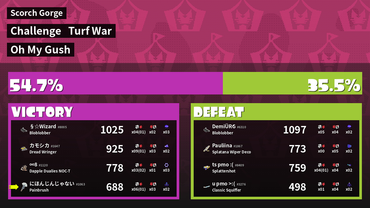 | Mode | Turf War - Challenge | ||