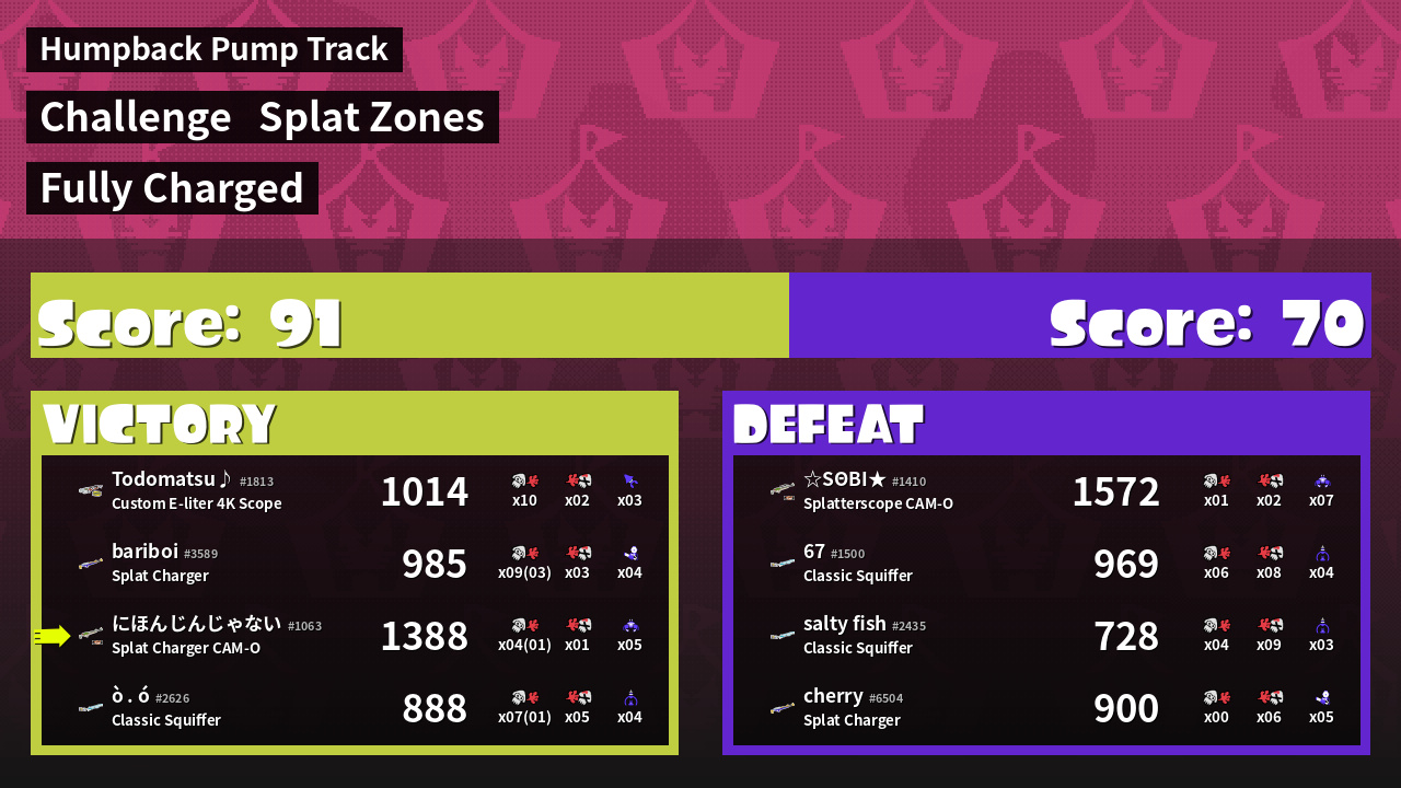 | Medals | #1 Splat Zone Inker #1 Turf Inker #1 Splat Zone Hero | ||