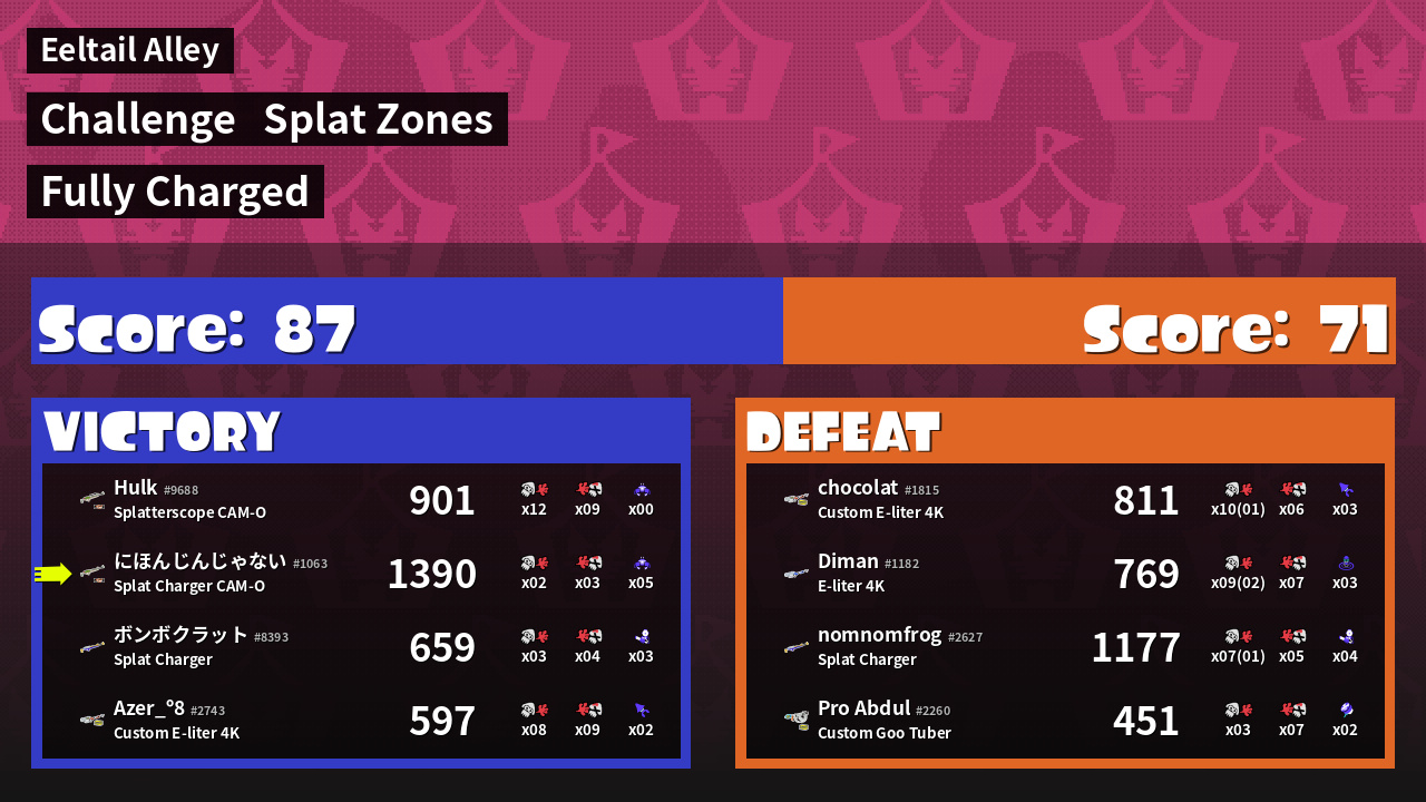 | Medals | #1 Splat Zone Inker #1 Turf Inker #1 Super Jump Spot | ||