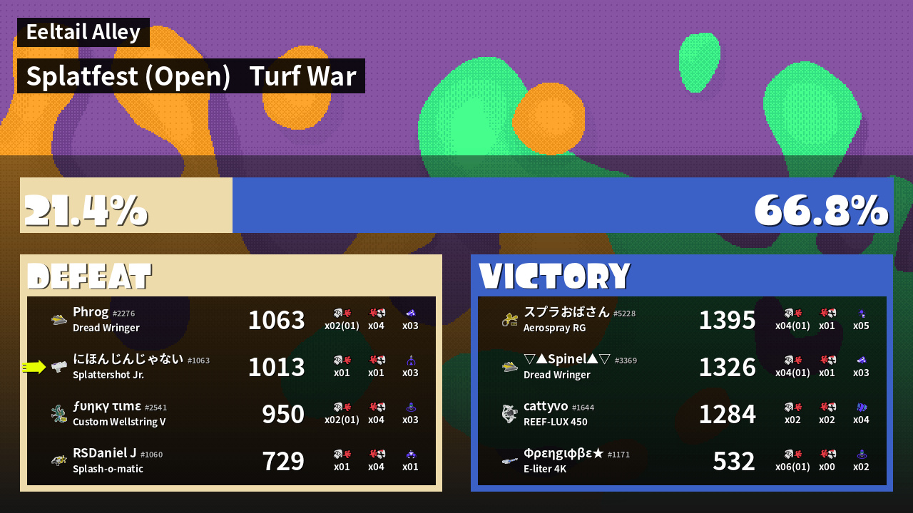 | Medals | #1 Popular Target #1 Enemy-Base Inker #1 Enemy Splatter | ||