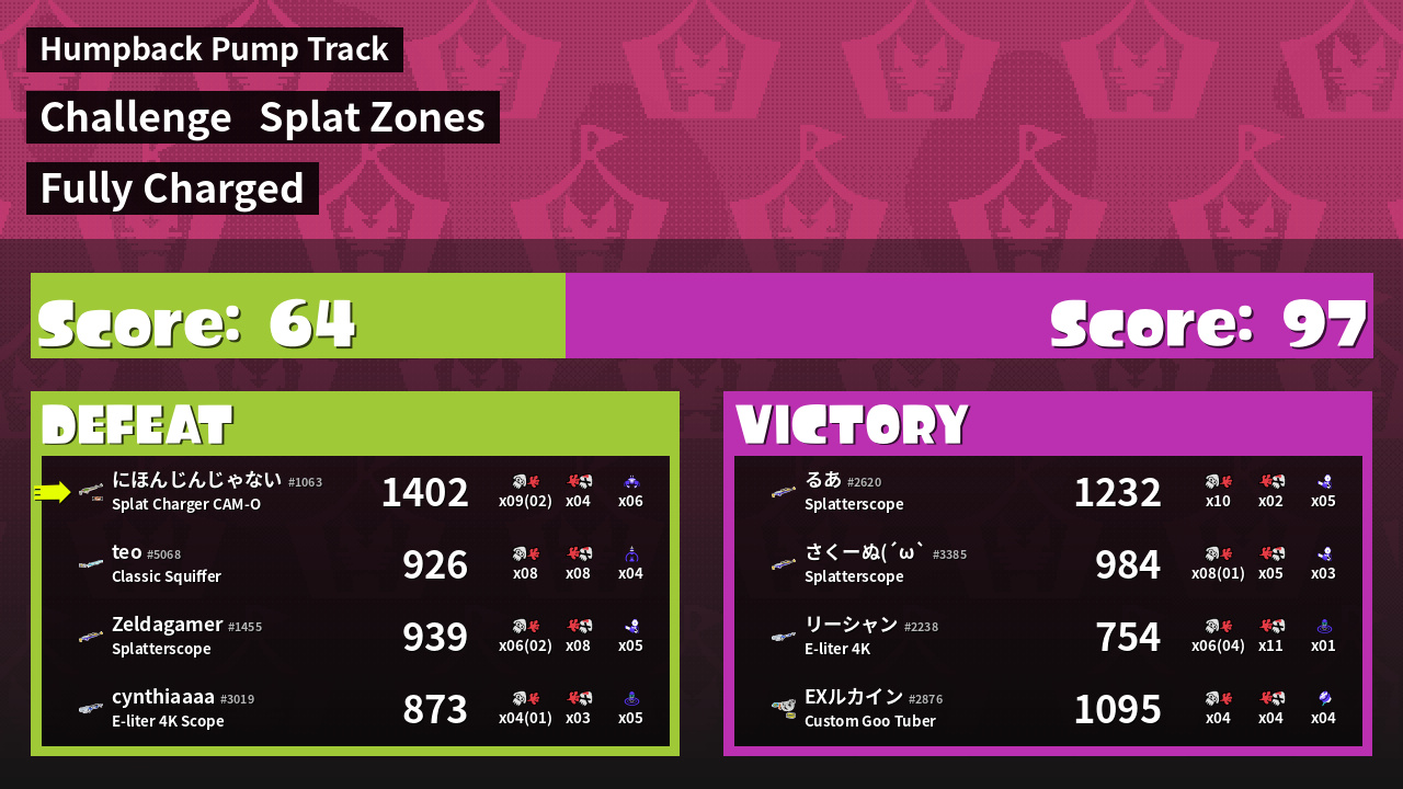 | Medals | #1 Overall Splatter #1 Splat Zone Inker #1 Splat Zone Guard | ||