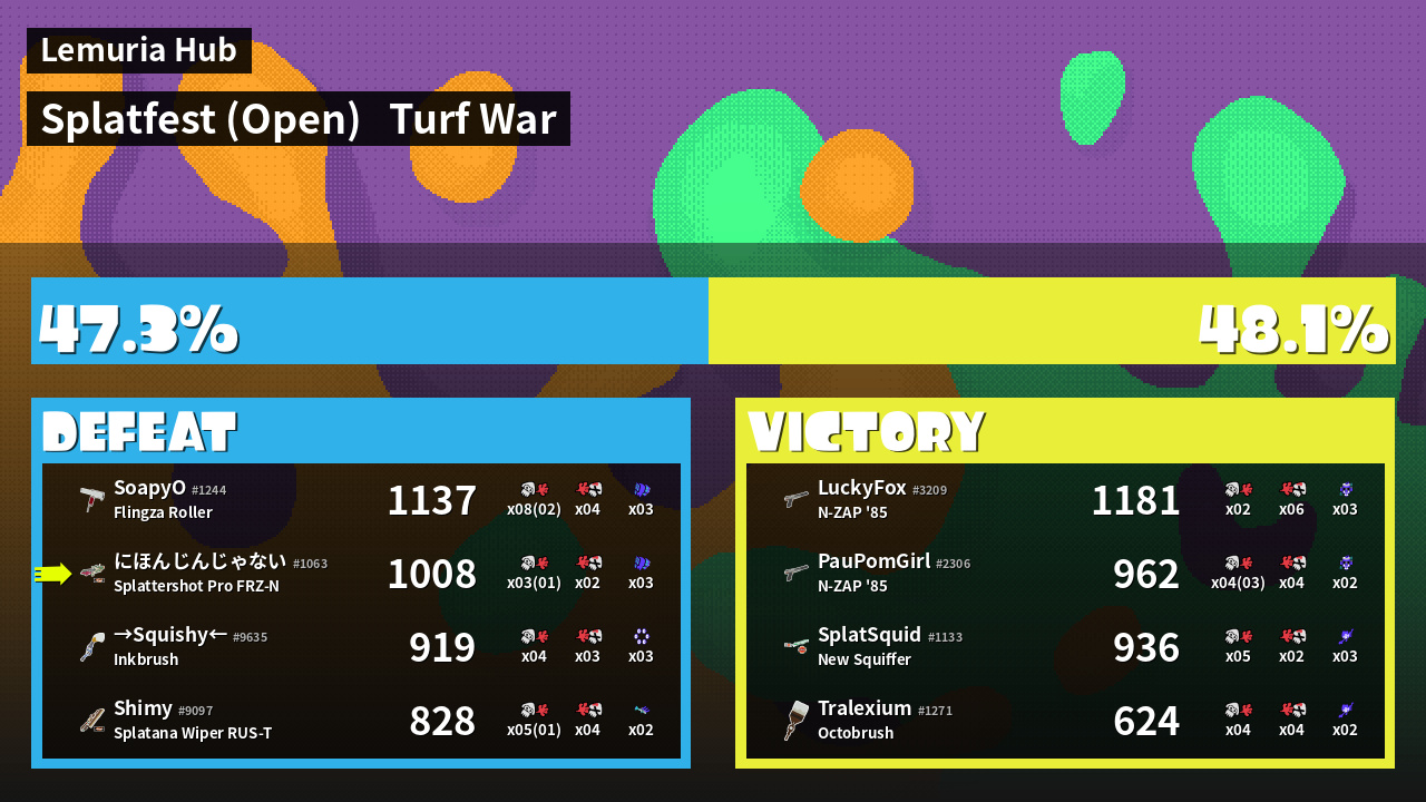 | Medals | #1 Enemy-Base Inker #1 Super Jump Spot #1 Ink Consumer |