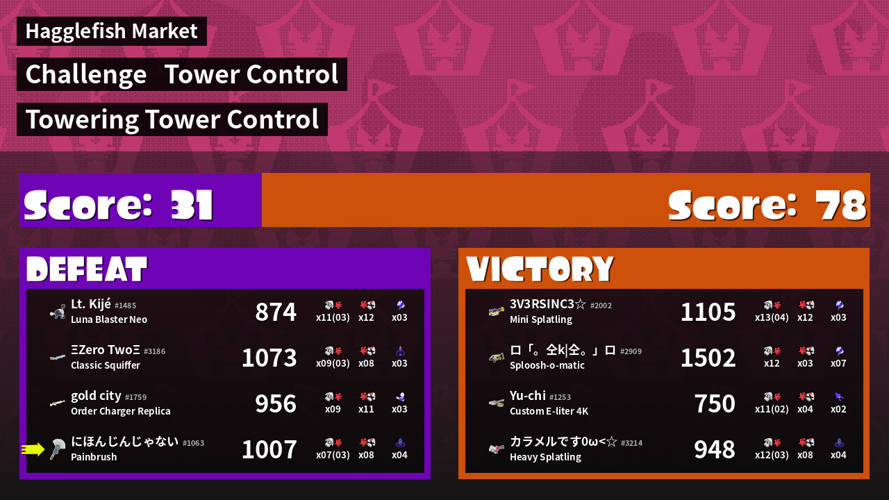 | Medals | #1 Splat Assister #1 Ink Consumer #1 Wave Breaker User | ||