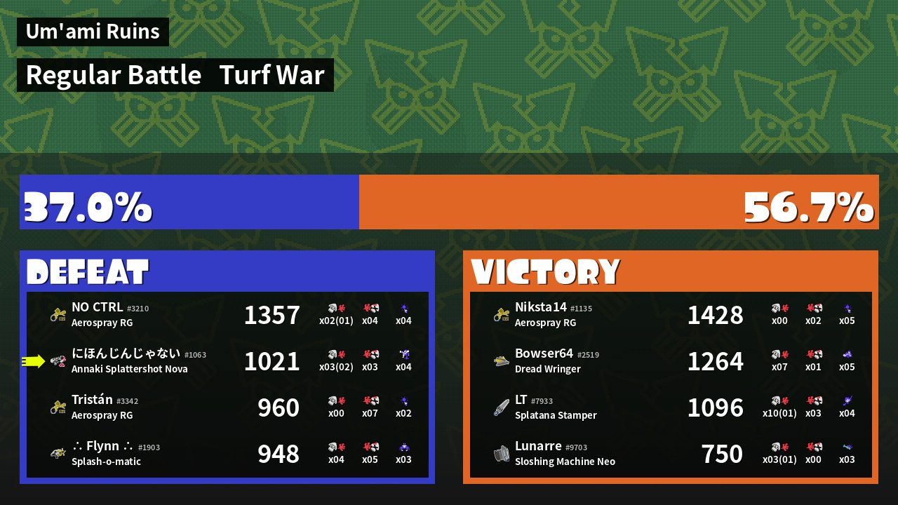 | Weapon | Annaki Splattershot Nova ( Ink Mine / Inkjet) | ||