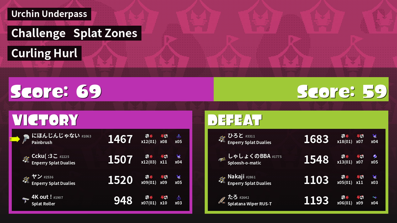 | Medals | #1 Overall Splatter #1 Splat Zone Inker #1 Splat Zone Guard | ||