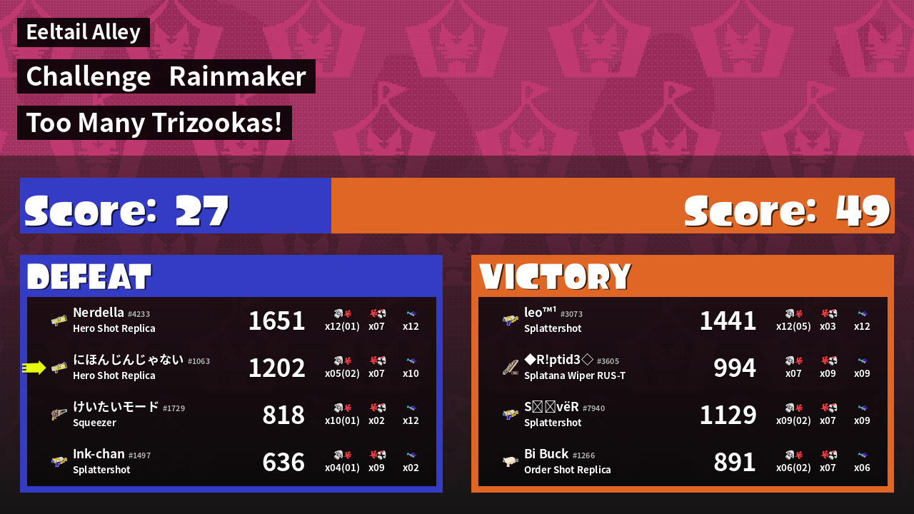 | Challenge | Too Many Trizookas! A high-powered Trizooka battle! | ||