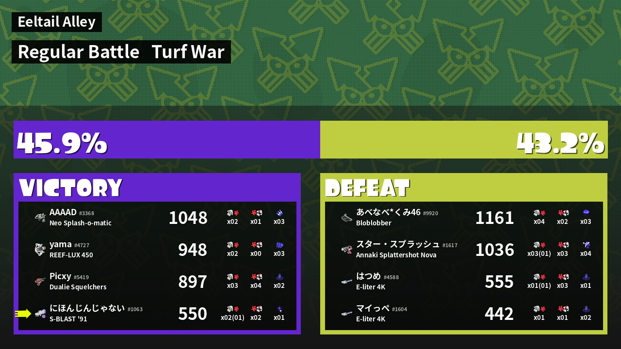 | Splatlandian Youth  マイっぺ #1604 |  E-liter 4K                    | 442 | 1 + 0 | 1 | 1.00 |  2 | |