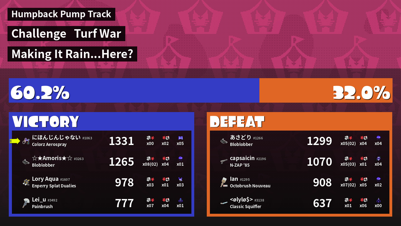 | Weapon | Colorz Aerospray ( Burst Bomb / Splattercolor Screen) | ||