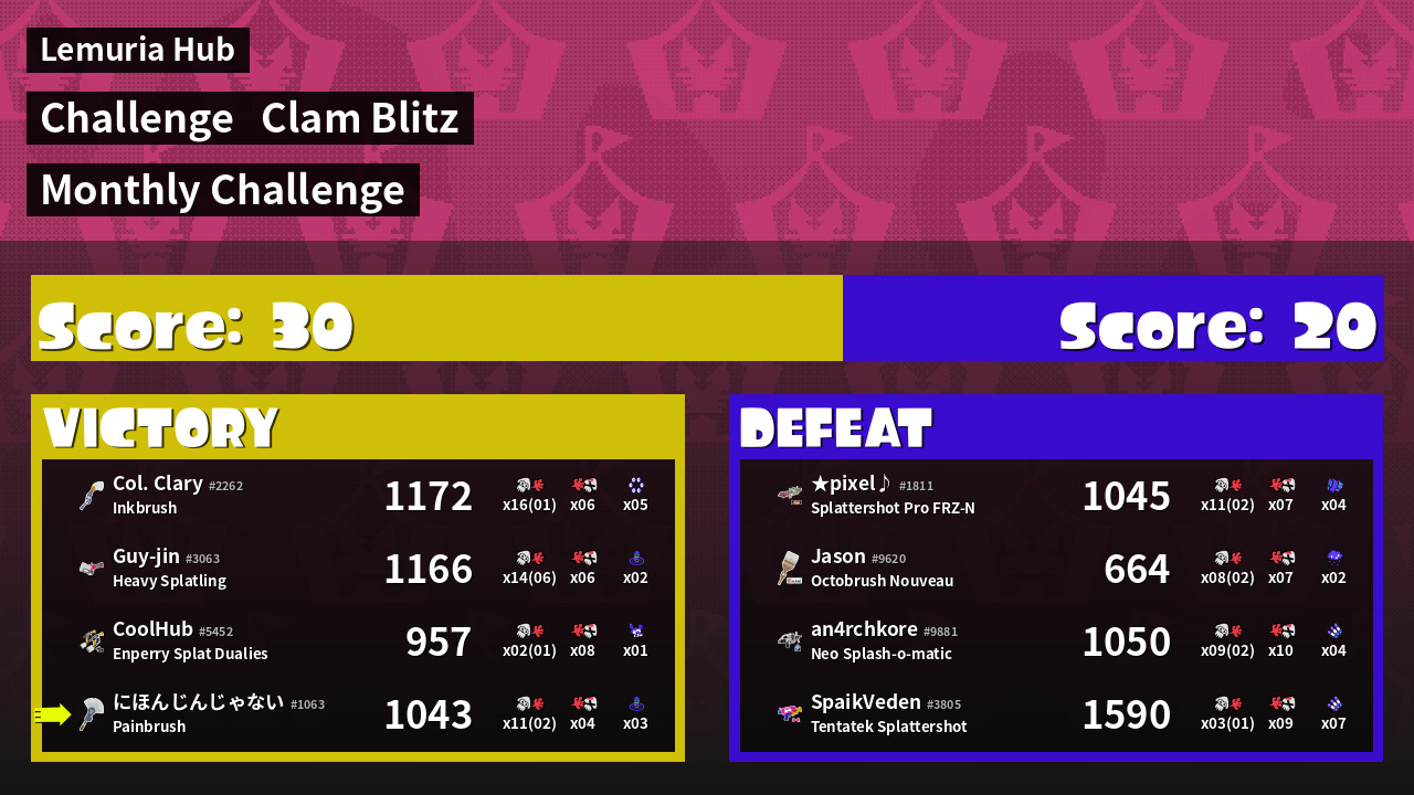 | Mode | Clam Blitz - Challenge | ||