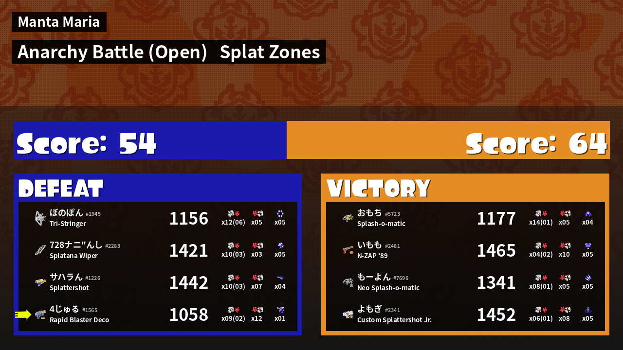 | Mode | Splat Zones - Anarchy Battle (Open) | ||