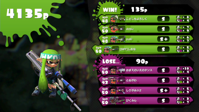 | Splattershot Jr. | 50 | S | 10 / 4 > | 2.50 | 71.4% | |