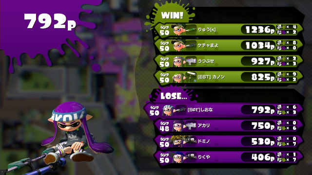 | Splattershot Jr. | 50 | 927 | 2 / 3 < | 0.67 | 40.0% | |