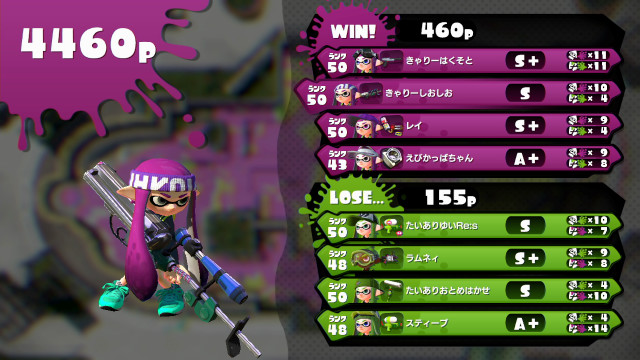 | Hydra Splatling | 50 | S+ | 9 / 4 > | 2.25 | 69.2% | |