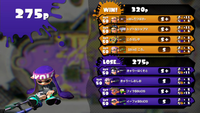 | Splattershot Jr. | 50 | 11 / 6 > | 1.83 | 64.7% | |||