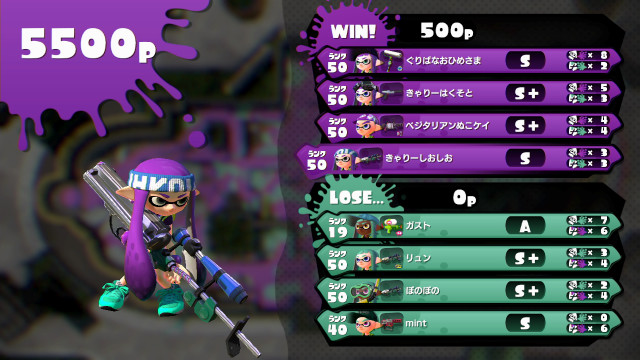 | Tentatek Splattershot | 19 | A | 7 / 6 > | 1.17 | 53.8% | |