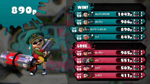 | Heavy Splatling | 42 | 985 | 6 / 2 > | 3.00 | 75.0% | |