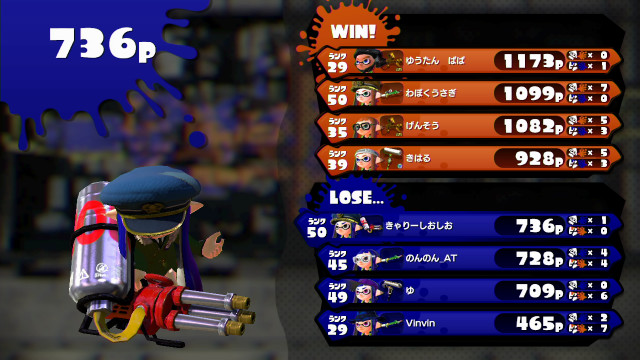 | Splattershot | 50 | 736 | 1 / 0 > | 99.99 | 100.0% | |