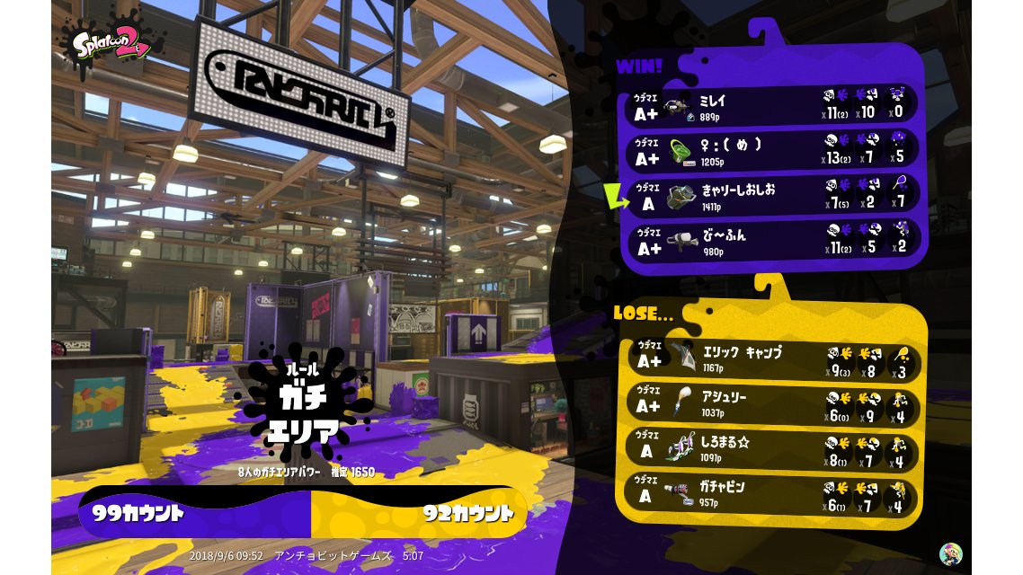 | Mode | Splat Zones - Ranked Battle | ||||||||||||||||||||||||||||||||||