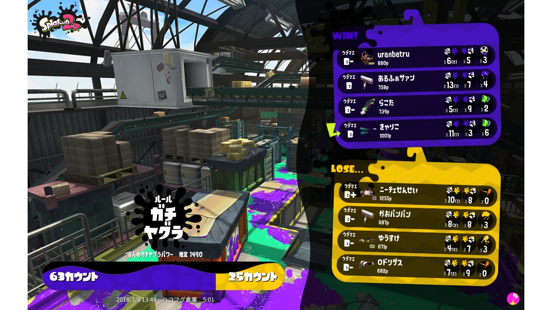 | Name | Weapon | Level | Rank | Inked | k+a/sp | k/d |