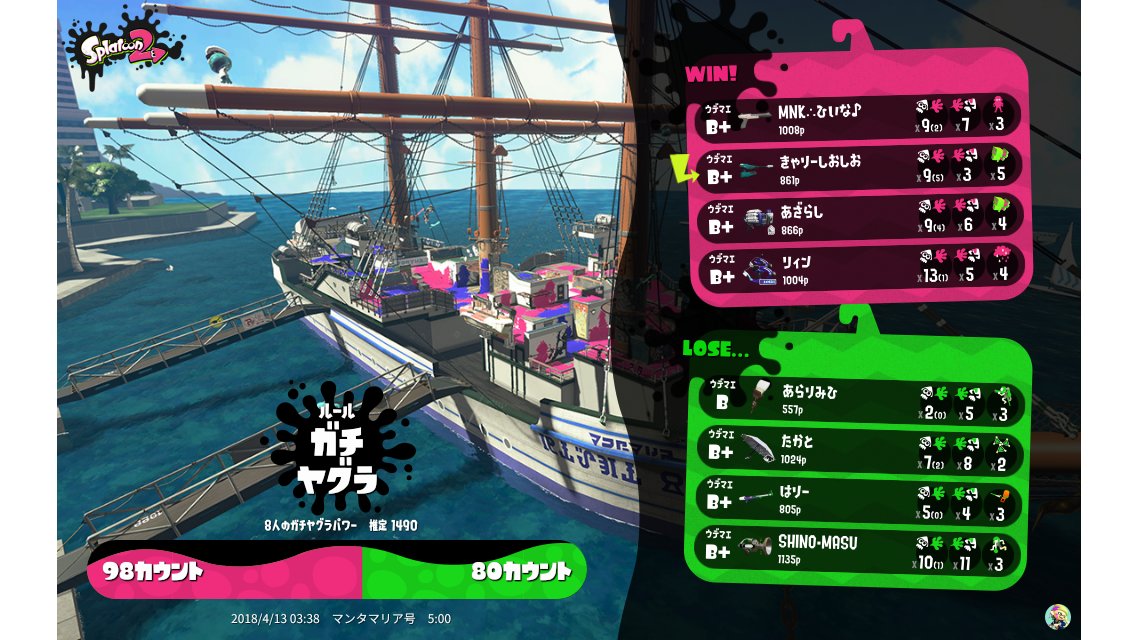| Name | Weapon | Level | Rank | Inked | k+a/sp | k/d |