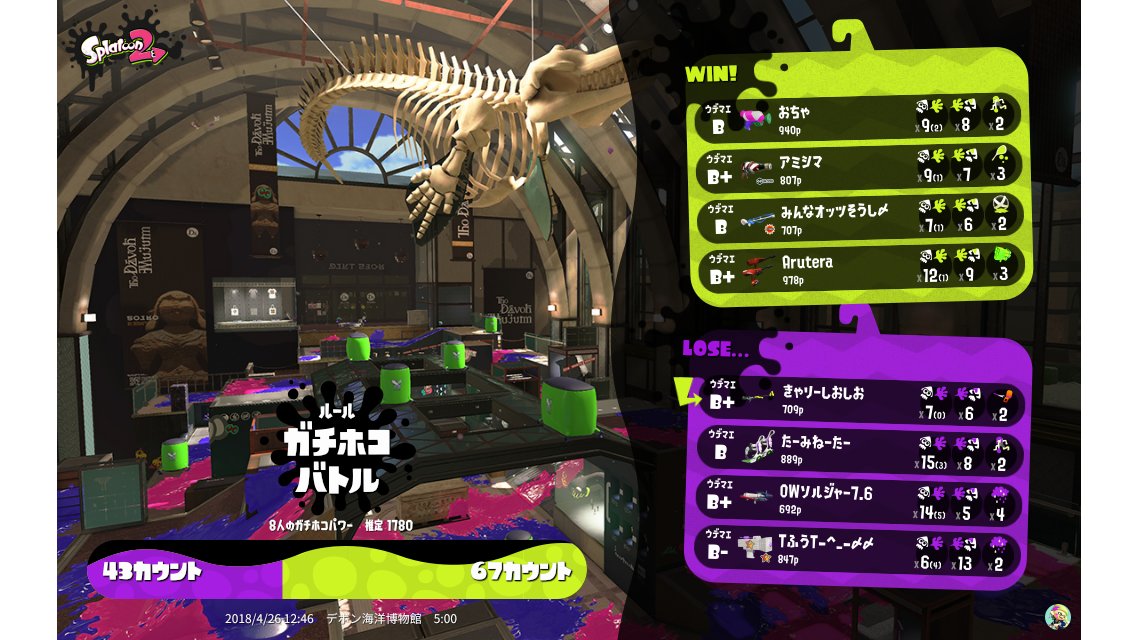 | Name | Weapon | Level | Rank | Inked | k+a/sp | k/d |