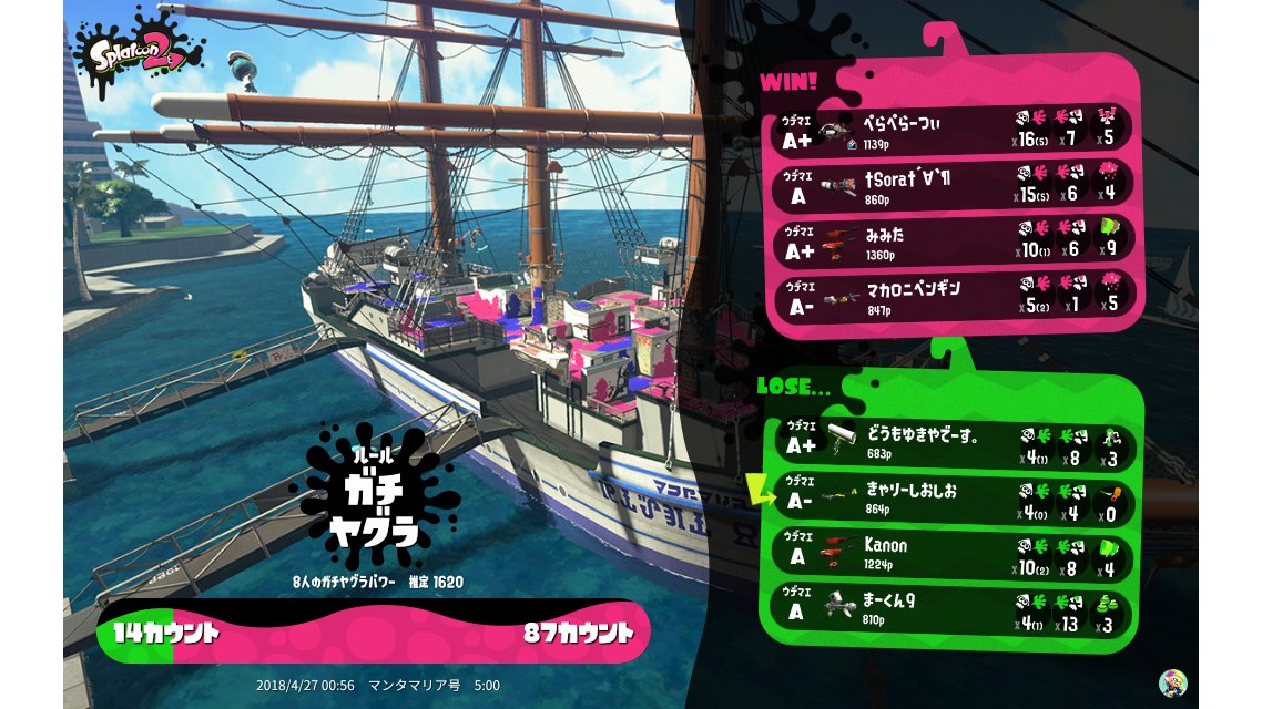 | Name | Weapon | Level | Rank | Inked | k+a/sp | k/d |