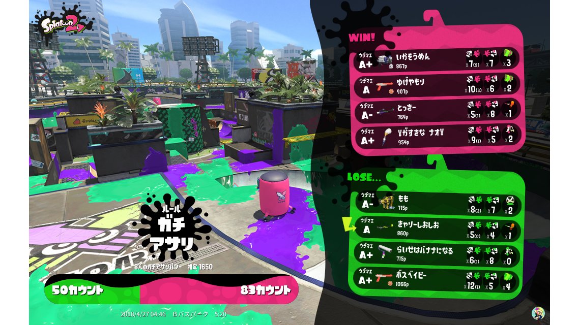 | Name | Weapon | Level | Rank | Inked | k+a/sp | k/d |