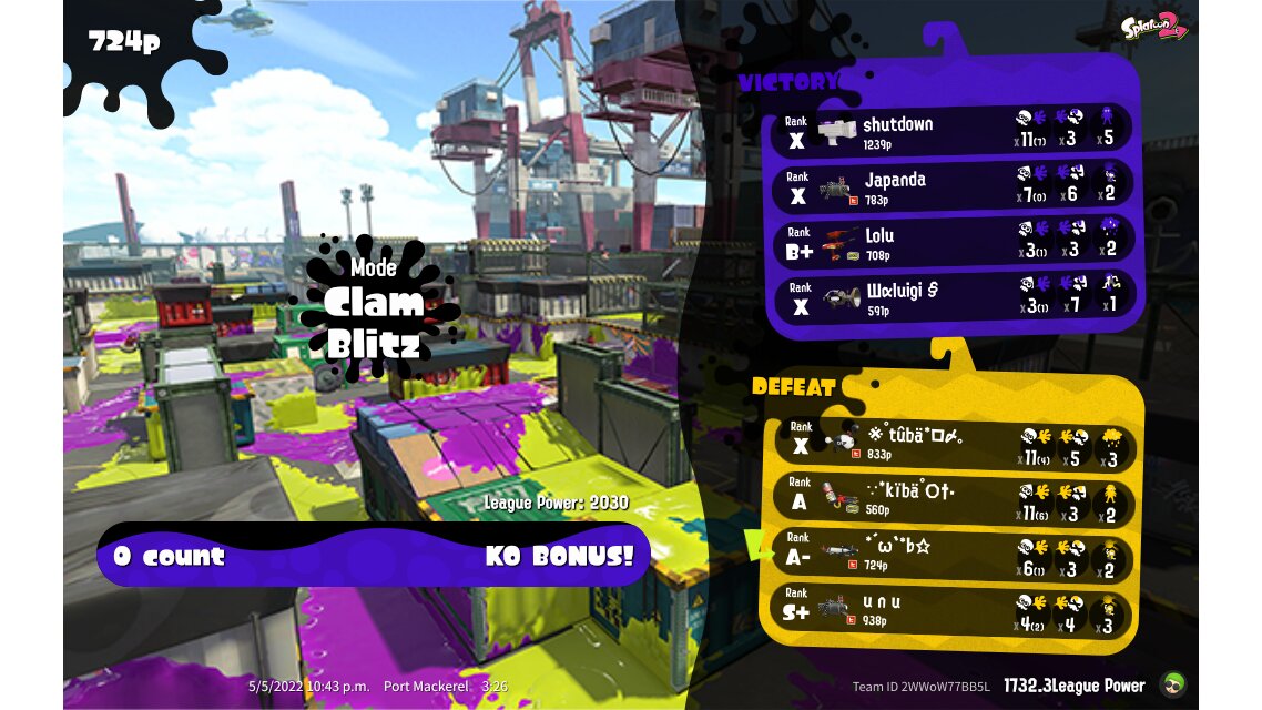 | Mode | Clam Blitz - League Battle (Quad) | |||||||||||||||||||||||||||||||