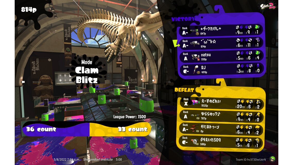 | Mode | Clam Blitz - League Battle (Twin) | |||||||||||||||||||||||||||||||||||||||||||||||||