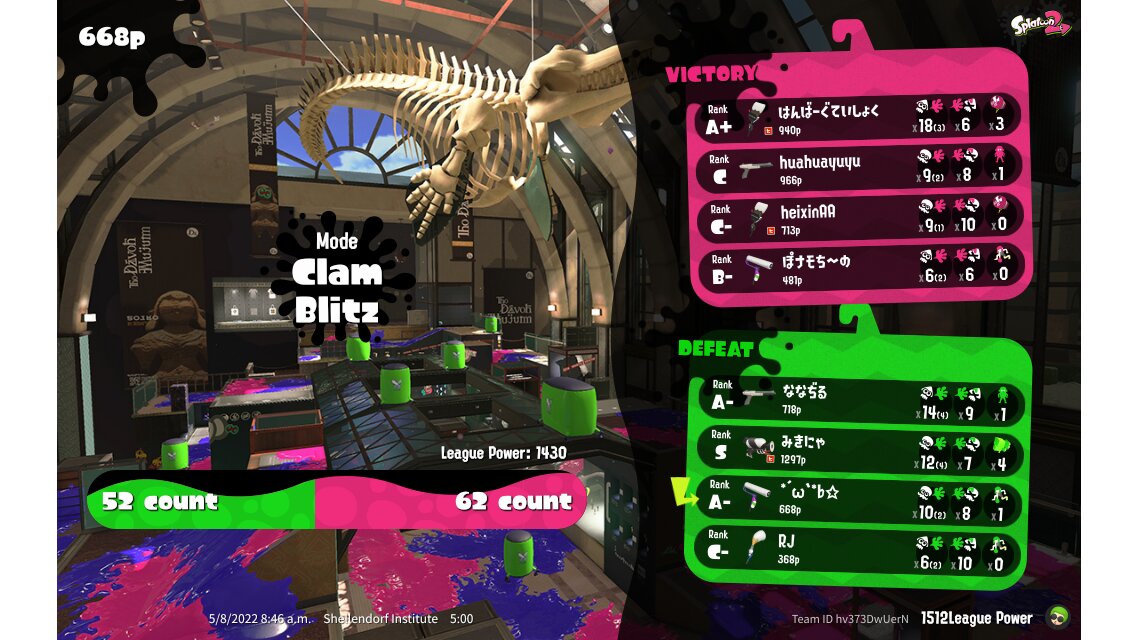 | Mode | Clam Blitz - League Battle (Twin) | ||||||||||||||||||||||||||||||||||||||||
