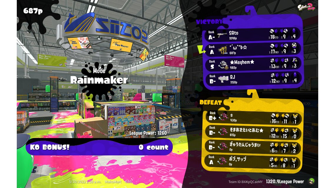 | Mode | Rainmaker - League Battle (Quad) | |||||||||||||||||||||||||||||||