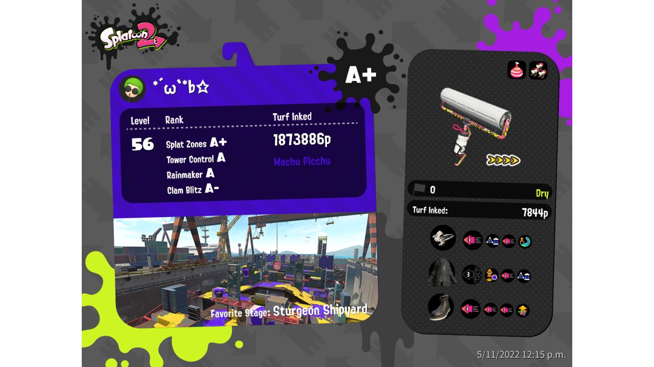 | Name | Weapon | Level | Rank | Inked | k+a/sp | k/d |