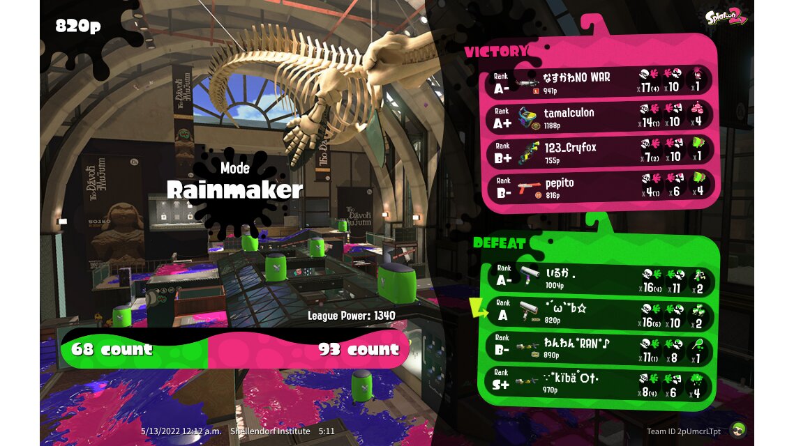 | Mode | Rainmaker - League Battle (Twin) | |||||||||||||||||||||||||||||||
