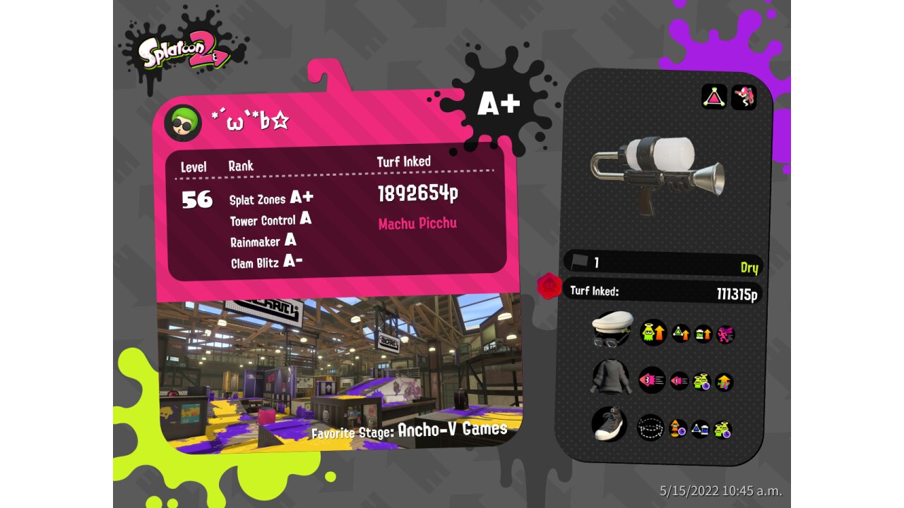 | Name | Weapon | Level | Rank | Inked | k+a/sp | k/d |