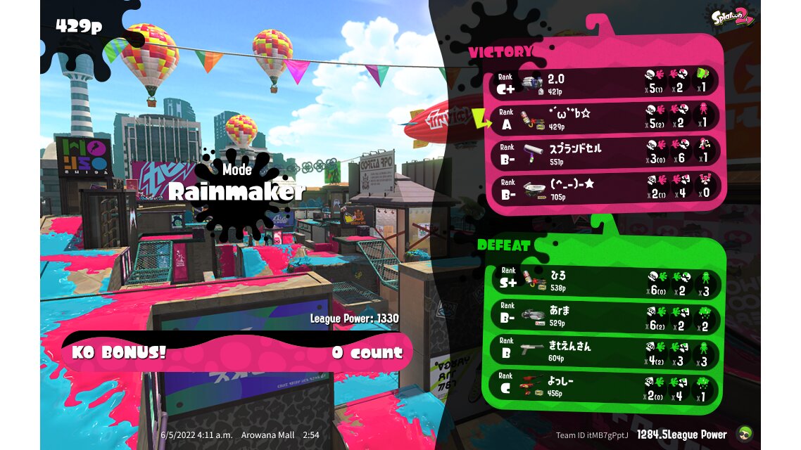 | Mode | Rainmaker - League Battle (Twin) | |||||||||||||||||||||||||||||||||||||