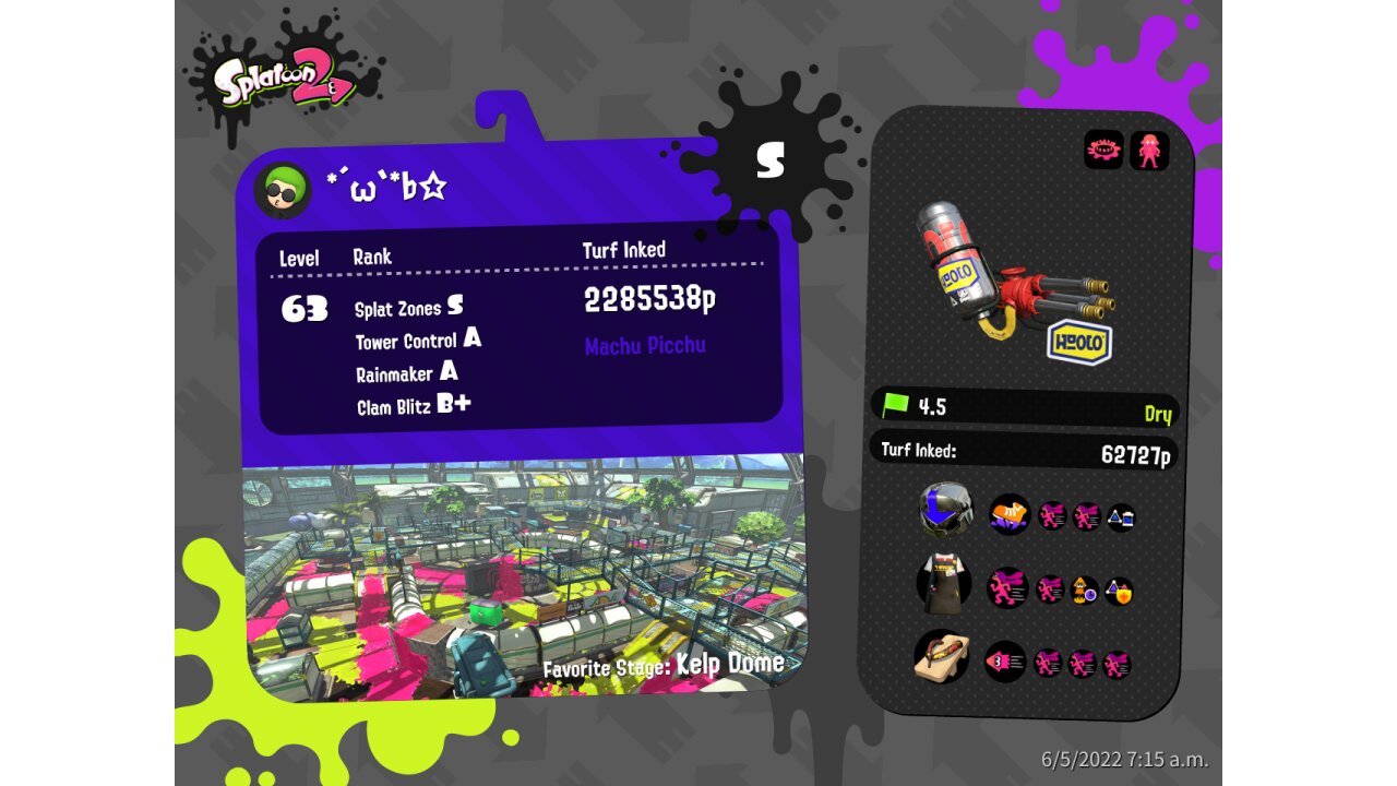 | Weapon | Custom Hydra Splatling ( Ink Mine, Ink Armor) | |||||||||||||||||||||||||||||||||||||