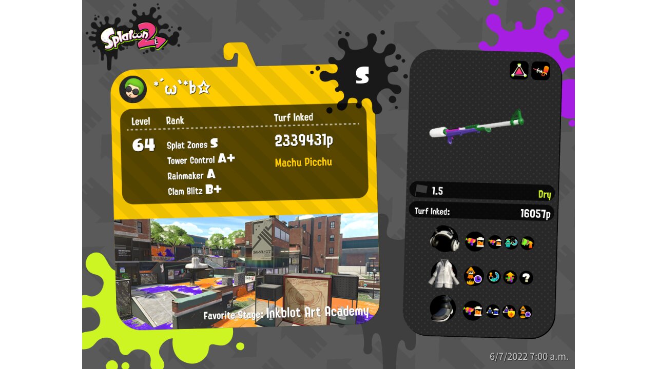 | Mode | Turf War - Regular Battle | |||||||||||||||||||||||||||||||||||||||||||