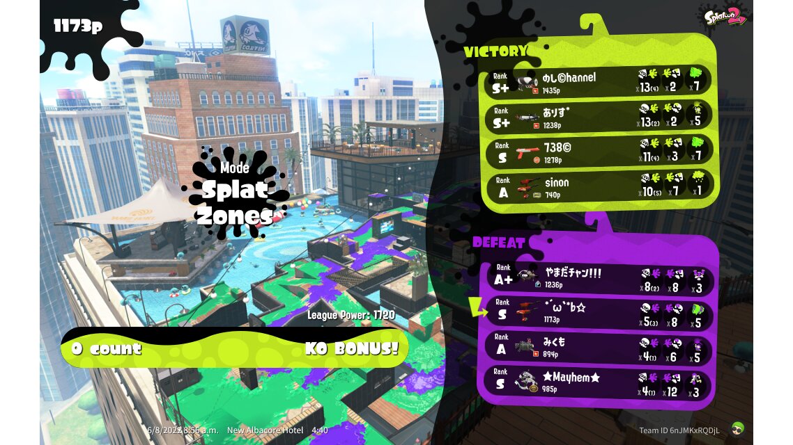 | Mode | Splat Zones - League Battle (Twin) | |||||||||||||||||||||||||||||||
