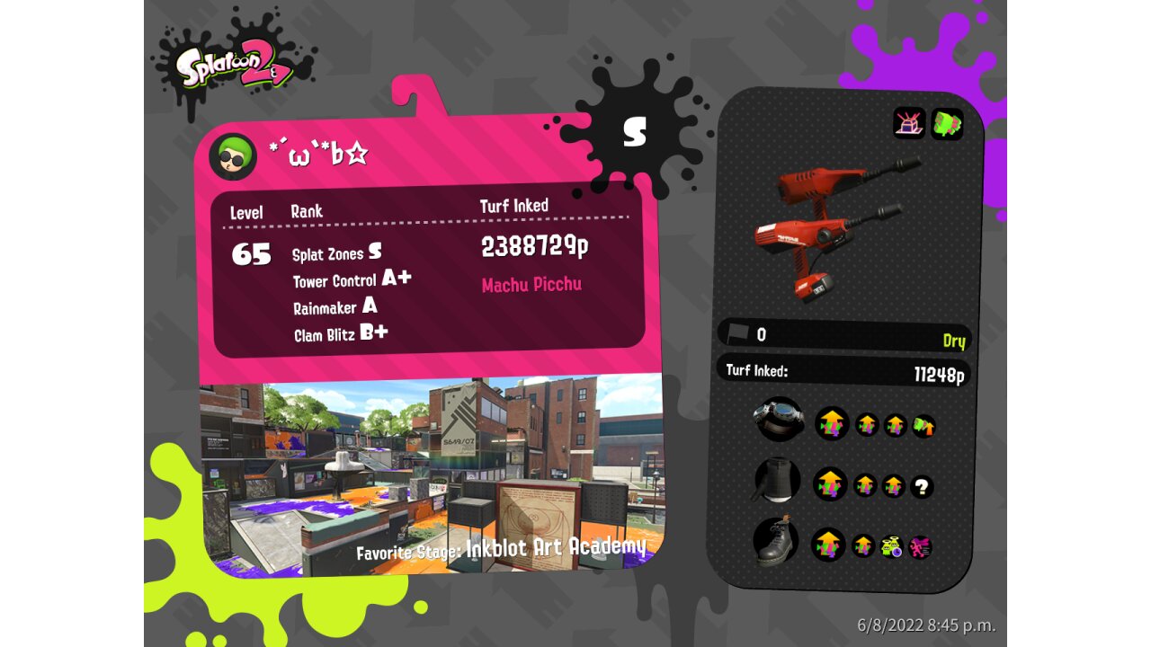| Name | Weapon | Level | Rank | Inked | k+a/sp | k/d |