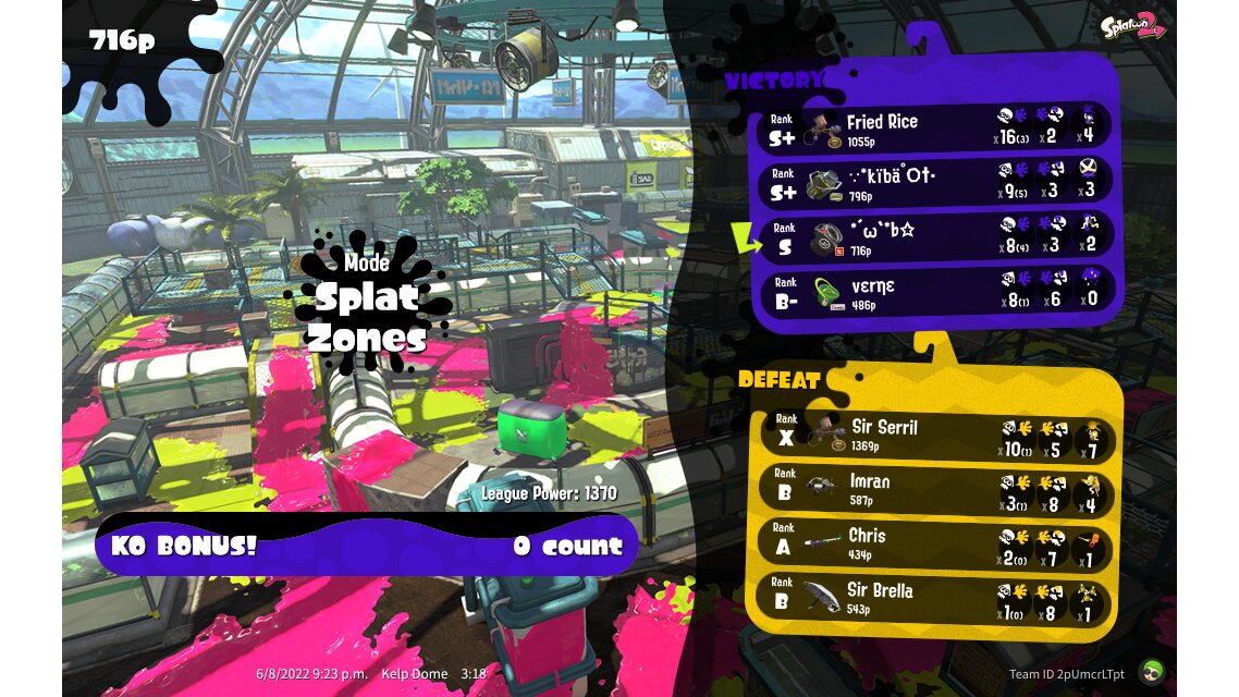 | Mode | Splat Zones - League Battle (Twin) | |||||||||||||||||||||||||||||||||||||