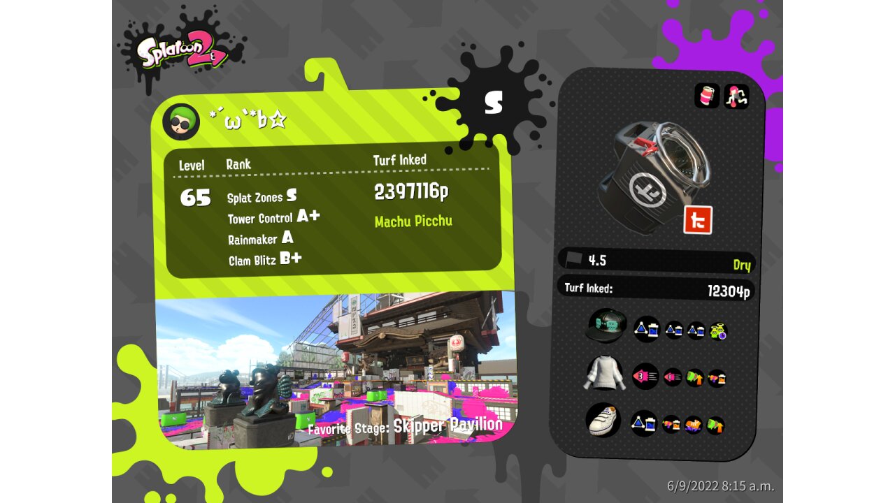 | User Agent | splatnet2statink / 1.7.2 | |||||||||||||||||||||||||||||||||||||