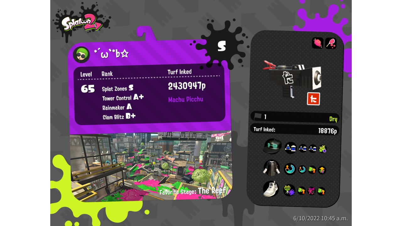 | Name | Weapon | Level | Rank | Inked | k+a/sp | k/d |