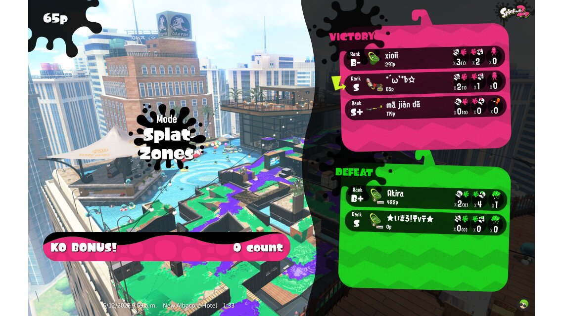 | Mode | Splat Zones - Private Battle | ||||||||||||||||||||||||||||||||||